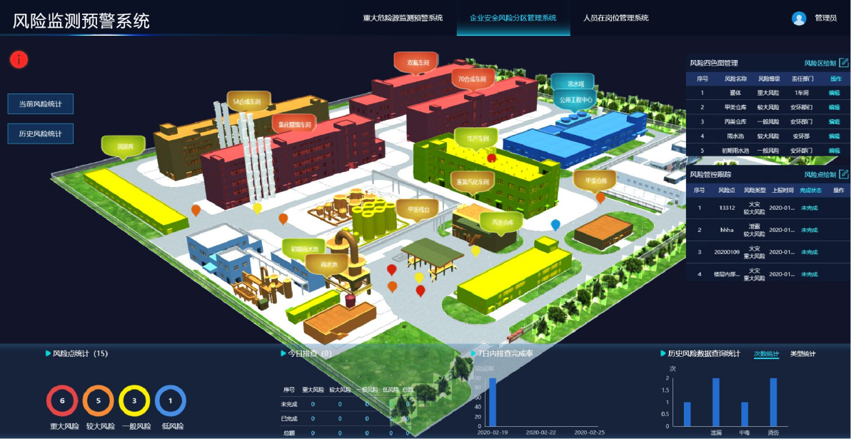 打造集重大危險源監控、可燃有毒氣體檢測報警、企業安全風險分區、人員在崗在位等管理信息的一體化監管平臺,實現安全生產要素的數字化管理,以及安全生產風險的實時動態監測預警,以信息化、網格化和數字化的園區安全監管手段,落實險化學品企業安全生產主體責任,推動安全風險分級管控和隱患排查治理的雙重預防機制構建,有效防范重特大安全事故。