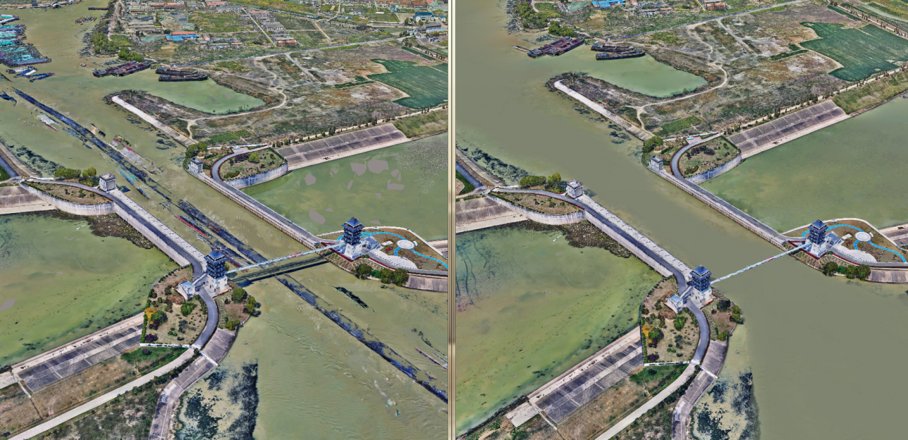 為保證成果的美觀性,飛燕遙感首次采用了水域批量處理技術。在模型人工修飾環節完成后,由專人進行水域批量處理,保證了水域高程一致或平緩過渡,水面紋理整潔,色彩過渡自然,體現了飛燕品牌的“高科技”與“高品質”。