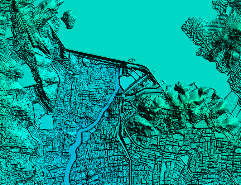對預處理后的點云進行自動分類和手動分類,并以帶有高程信息的面狀水域范圍線作為特征線構建并輸出數字表面模型(DSM)產品和數字高程模型(DEM)產品。