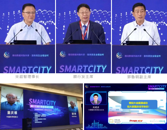 開幕式上,中國測繪學會理事長宋超智、中國遙感委員會主席顧行發、北京市科學技術協會副主席郭魯鋼在大會上發表了精彩致辭,中國服務貿易協會會長、中國科學院院士周成虎,中國科學院院士童慶禧也通過線上連線對大會的召開表示祝賀。