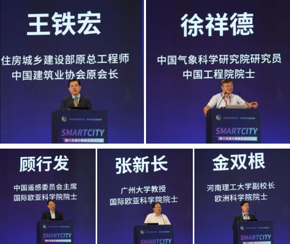 智慧城市建設離不開科學技術的發展。王鐵宏會長、徐祥德院士、顧行發主席、張新長教授、金雙根副校長等多位院士、專家作了精彩主旨演講。李德仁院士、劉先林院士、重慶市城市管理局雷旭東副局長,通過現場連線進行了主旨演講。