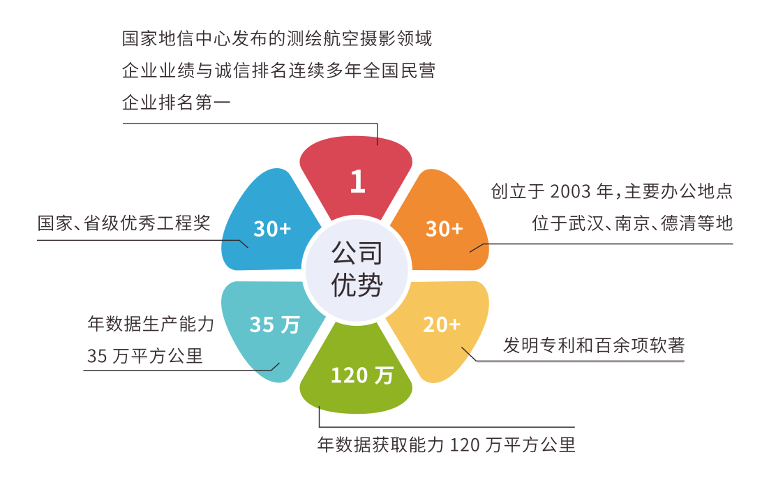 1. 擁有國際最先進航攝設備,自主研發航空集成多傳感器航攝儀 (AIMS),一次飛行同步獲取正射真彩色影像、激光、傾斜和高光譜等數據;憑借強大空域協調能力,運用衛星遙感、航空遙感、傾斜航攝、激光航攝、無人機、地面調查等多種組合方式,助力地形級、城市級、部件級實景三維中國建設;