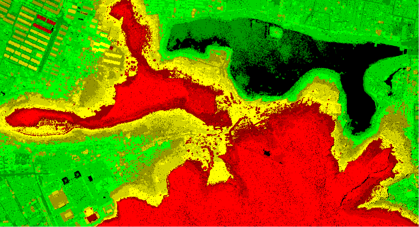 2021年,飛燕遙感承接了國家局“黃河灘區”項目,攝區位于河南、山東接壤處,包括黃河河道及河槽兩側廣闊的灘地,面積達6006km2。通過搭載機載LiDAR并盡量在低水位時間航攝,減少了作業人員涉水風險,最終成果掃描點云密度≥0.25點/m2,點云數據高程精度優于0.3m,滿足1:10000比例尺成圖要求。