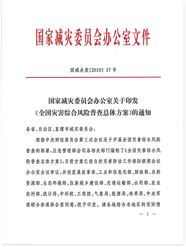 ●2019年12月,國家減災(zāi)委員會辦公室印發(fā)《全國災(zāi)害綜合風險普查總體方案》