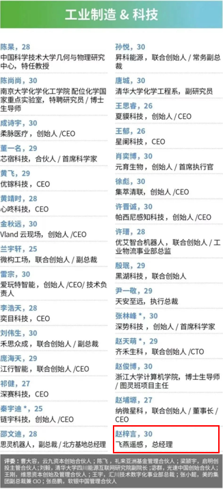 飛燕遙感趙梓言總經(jīng)理榮登福布斯中國30 Under 30