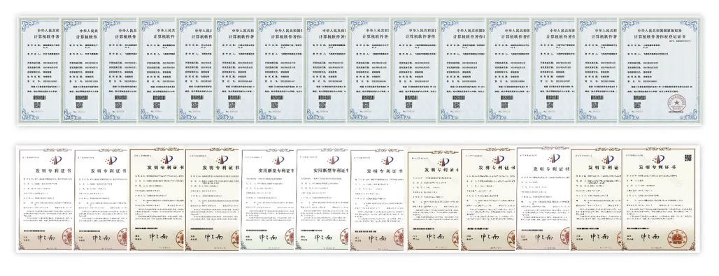 飛燕遙感配備了3臺PB級高速陣列存儲服務器,數(shù)據(jù)存儲能力2000TB;高性能工作站20臺,節(jié)點計算機400臺,年數(shù)據(jù)生產(chǎn)超30萬平方公里。在項目處理中發(fā)現(xiàn)問題、總結經(jīng)驗,自主研發(fā)了P3C、ImgTools等軟件。這些軟件操作方便,化繁為簡,實現(xiàn)了對海量點云、影像、三維模型等的批量化、自動化處理,大大提高了實景三維模型生產(chǎn)效率,并將生產(chǎn)力轉化為知識產(chǎn)權,獲得了20余項發(fā)明、實用新型專利授權,有效助力了江蘇、安徽、浙江、湖北、福建、貴州及香港等地超10萬平方公里的地形級、城市級、部件級實景三維建設。