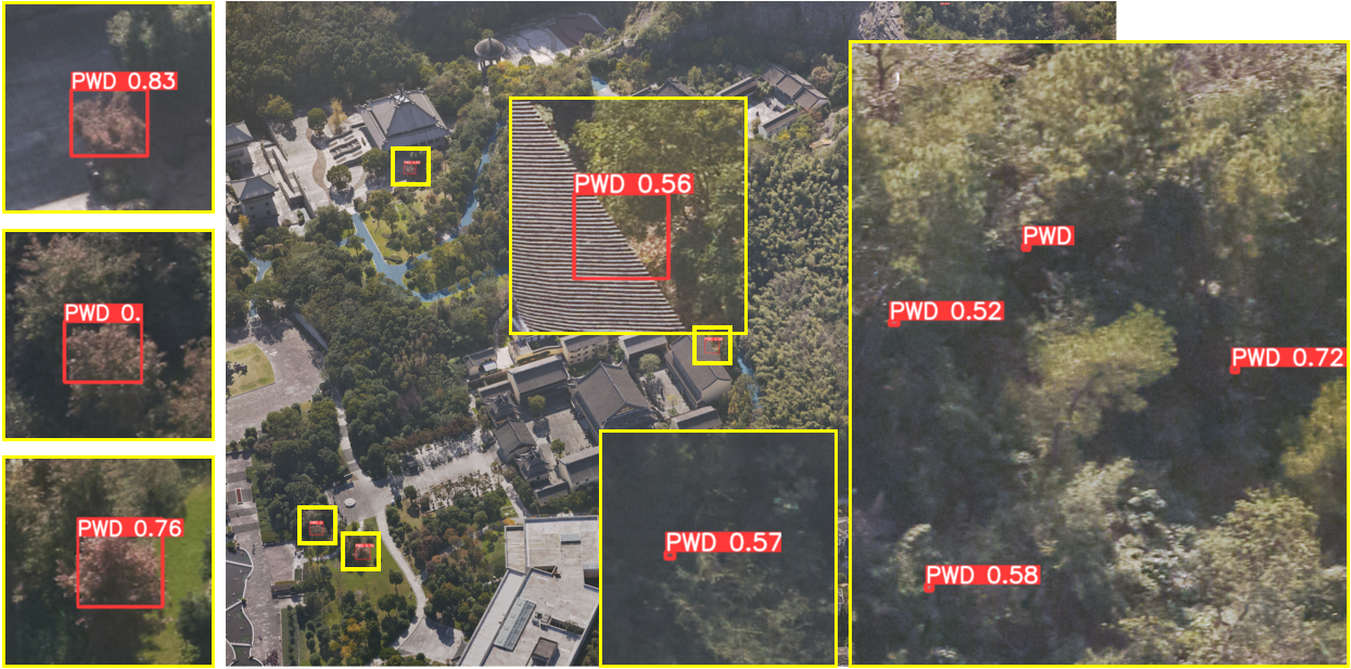 飛燕AI識別診斷模型,聚焦于中后期松材線蟲病的識別。采用先進的深度學習算法開發松材線蟲病害智能識別模型,通過大量樣本學習,從而實現對松材線蟲病害樹木的快速、準確識別,同時利用邊緣計算等算法確定病樹位置,從而提高松材線蟲病害防治效率和精準度。