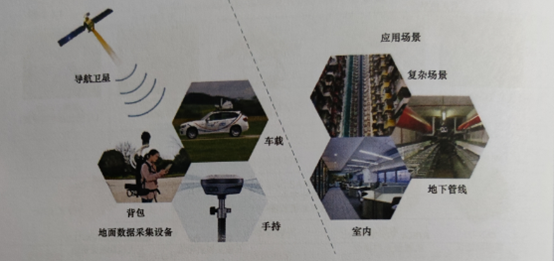 針對(duì)城市中復(fù)雜場(chǎng)景、室內(nèi)、地下管線等衛(wèi)星遙感以及航空攝影手段難以獲取數(shù)控的對(duì)象,可在地面進(jìn)行數(shù)據(jù)采集,如圖 2-2 所示。實(shí)景三維地面數(shù)據(jù)采集主要有車載背包、手持等方式,通過(guò)將激光掃描儀、影像采集設(shè)備、定位定姿設(shè)備、同步控制器等多傳感器集成于一體,并根據(jù)采集需求將設(shè)備搭載在測(cè)量車上,對(duì)建筑、道路進(jìn)行高精度實(shí)景三維數(shù)據(jù)采集,或通過(guò)背包、手持的方式對(duì)室內(nèi)室外、地下管線進(jìn)行數(shù)據(jù)采集。