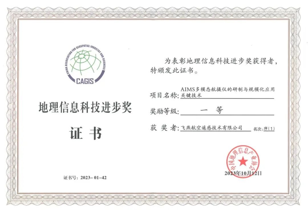 飛燕遙感打造了“AIMS多模態航空遙感一站式解決方案”。2022年入選《2022年度湖北省創新產品應用示范推薦目錄》,2023年憑借《AIMS多模態航攝儀的研制與規模化應用關鍵技術》獲得了由湖北省科技廳頒發的湖北省科學技術進步獎,由中國地理信息產業協會頒發的2023地理信息科技進步獎一等獎。