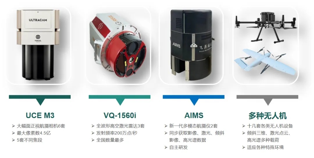 ●2臺自主研發AIMS多模態航攝儀,像素達8.8億,可同時獲取正射、傾斜、激光點云及高光譜影像;