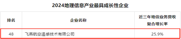 近日,中國地理信息產(chǎn)業(yè)協(xié)會公布2024地理信息產(chǎn)業(yè)最具成長性企業(yè)榜單,飛燕航空遙感技術(shù)有限公司(以下簡稱“飛燕遙感”)憑借卓越的技術(shù)創(chuàng)新能力和強(qiáng)勁的市場表現(xiàn)登榜。