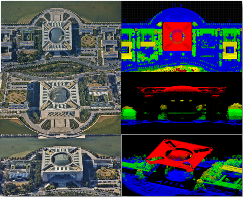 同步獲取的大幅面正視影像、傾斜影像、激光點云