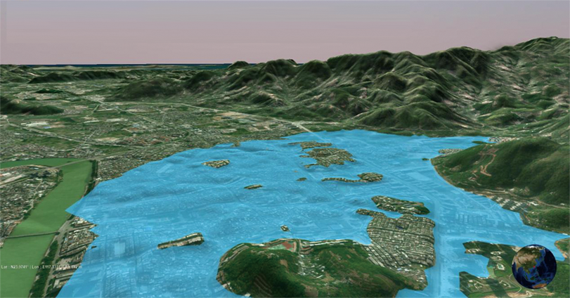 通過三維GIS技術,結合氣象部門發(fā)布的氣象數(shù)據(jù)、現(xiàn)有的區(qū)域內地形、河網(wǎng)等水文信息,構建水利氣象監(jiān)測系統(tǒng)。基于氣象因素動態(tài)分析,科學預測區(qū)域內水域、水利造成的影響范圍及影響程度。針對極端天氣,例如臺風,系統(tǒng)會錄入臺風的運動軌跡與時間信息,預測臺風登陸的時間地點,適時發(fā)出預警信息。